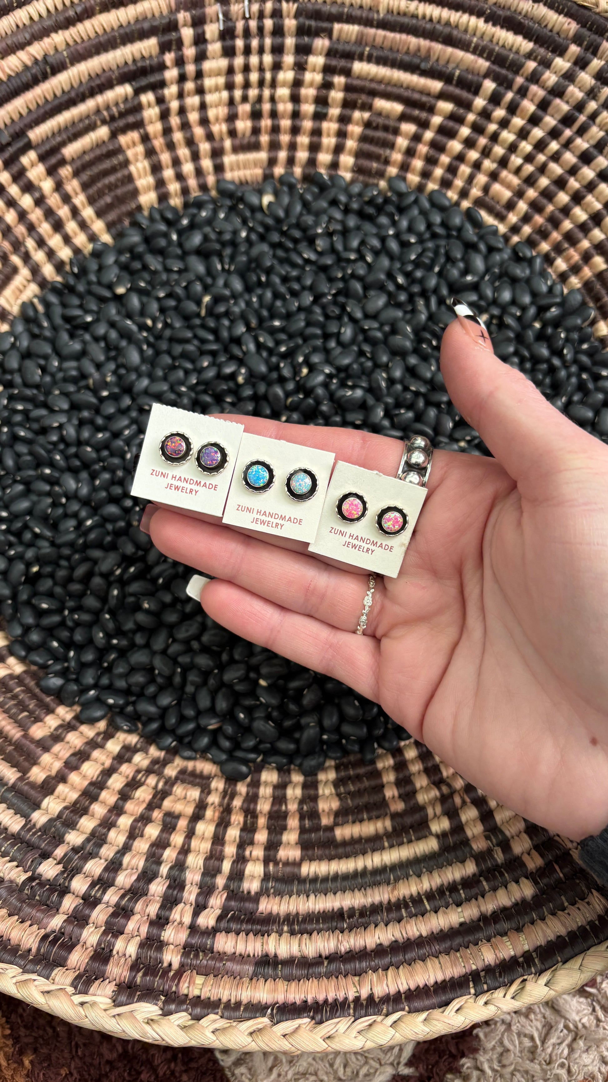 Handcrafted by a Native American artists with lab opal stones & sterling silver.