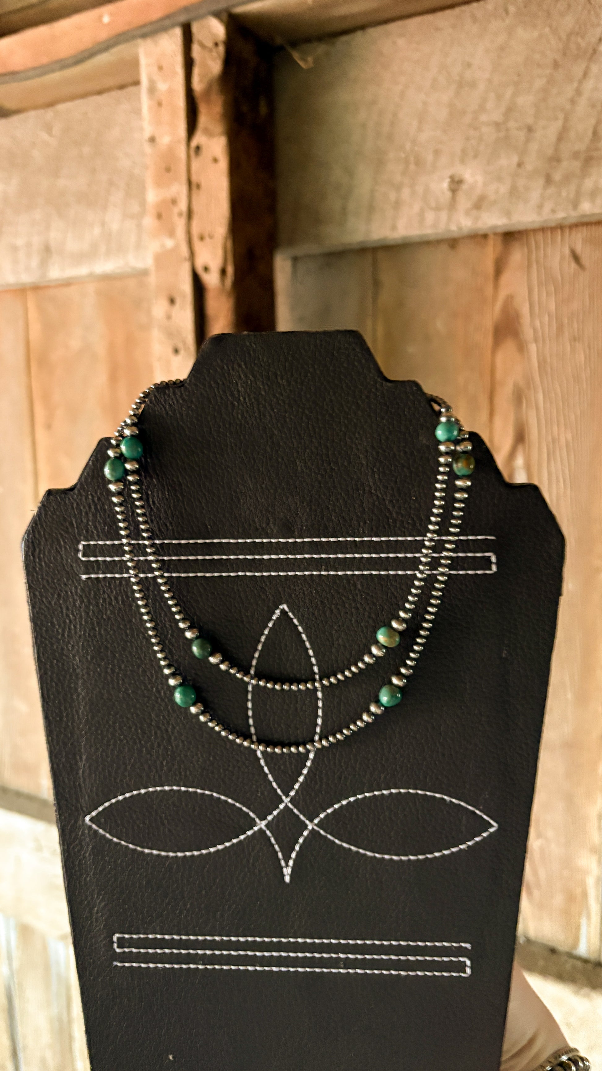 3-6MM GRADUATED STERLING SILVER PEARL NECKLACE - TURQUOISE