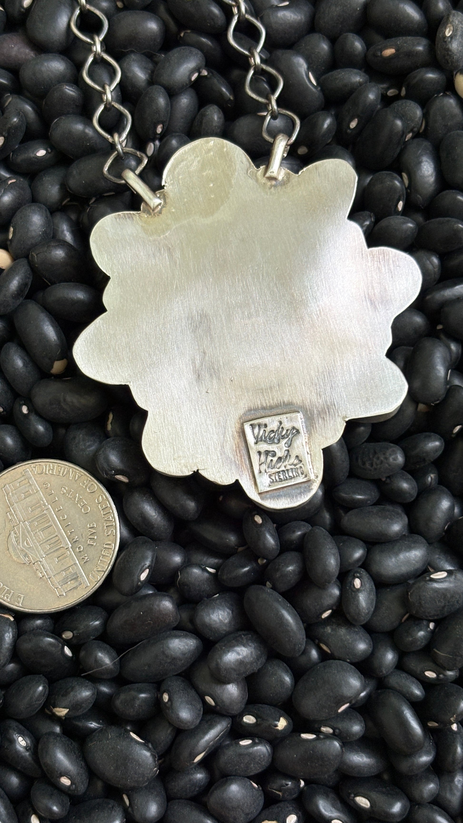 Handcrafted by Native American artist Vicky Hicks with genuine blue ridge turquoise stones & sterling silver.