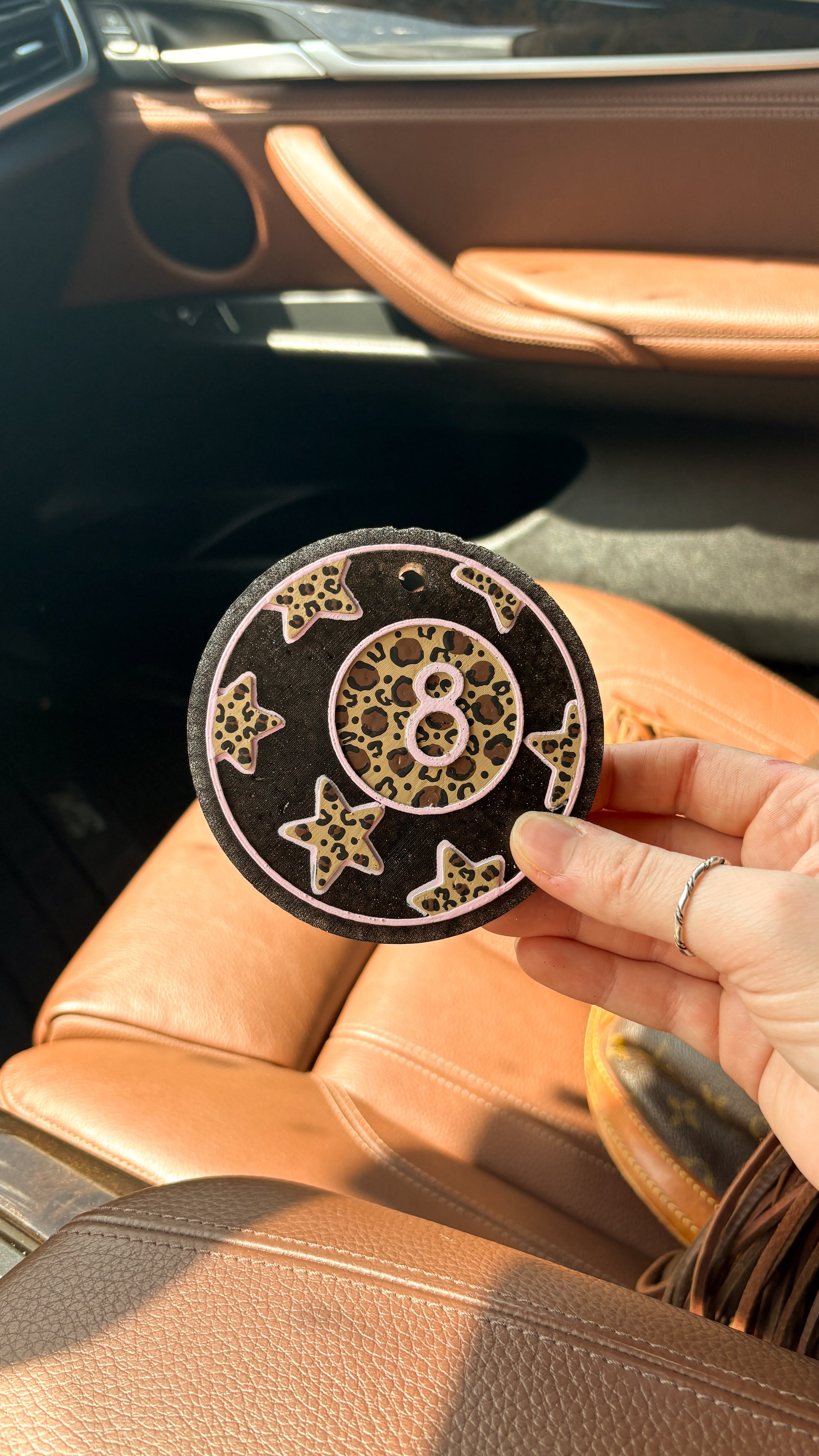 This cheetah 8 ball freshie is not only adorable, but will make your car smell wonderful! Comes in the scent do not disturb - a blend of mimosa, flower, musk, & washed linen.
