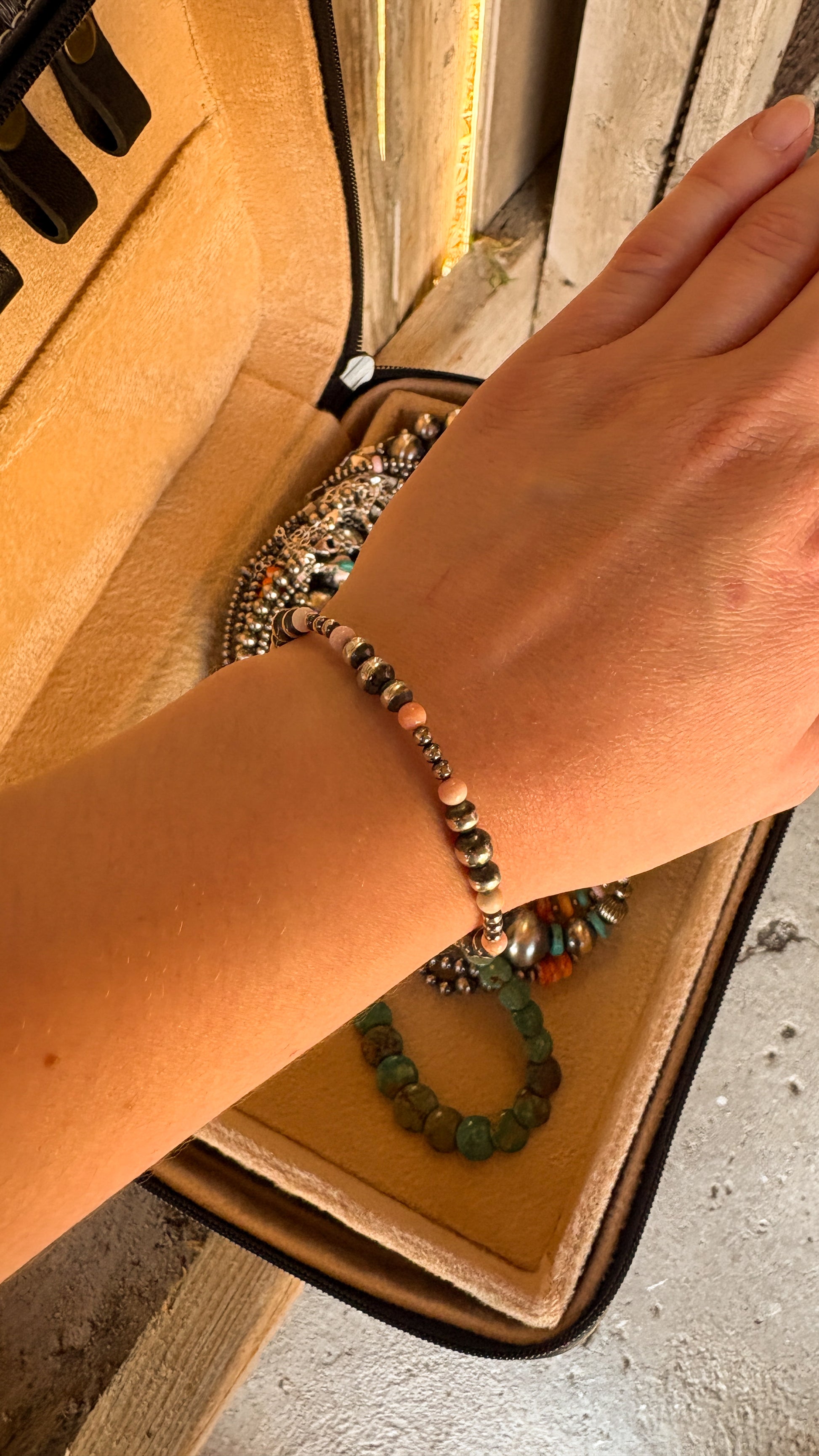 GRADUATED PINK CONCH & PEARL STRETCH BRACELET - READY TO SHIP