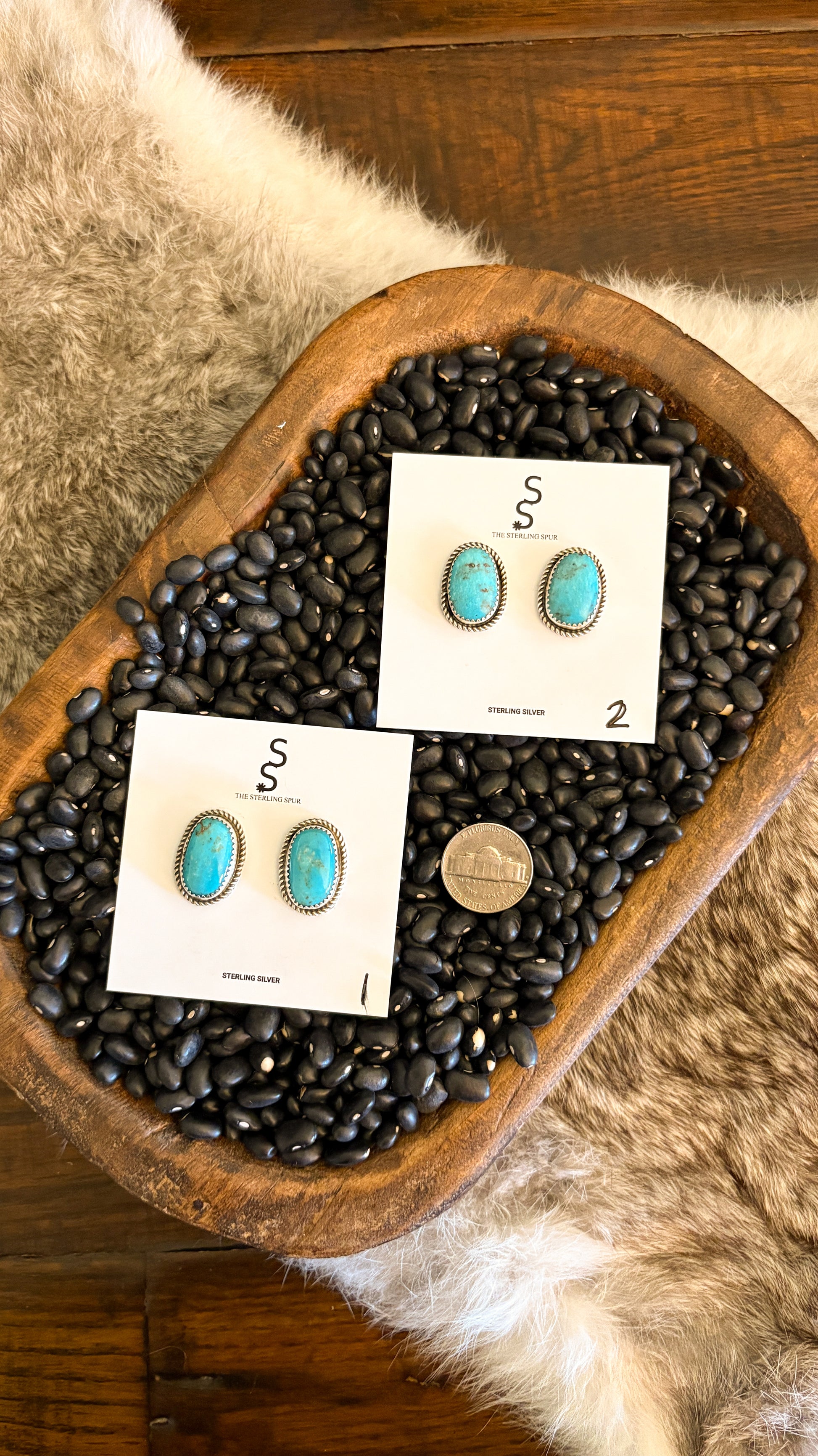 KINGMAN TURQUOISE POST EARRINGS BY DONOVAN NEZ
