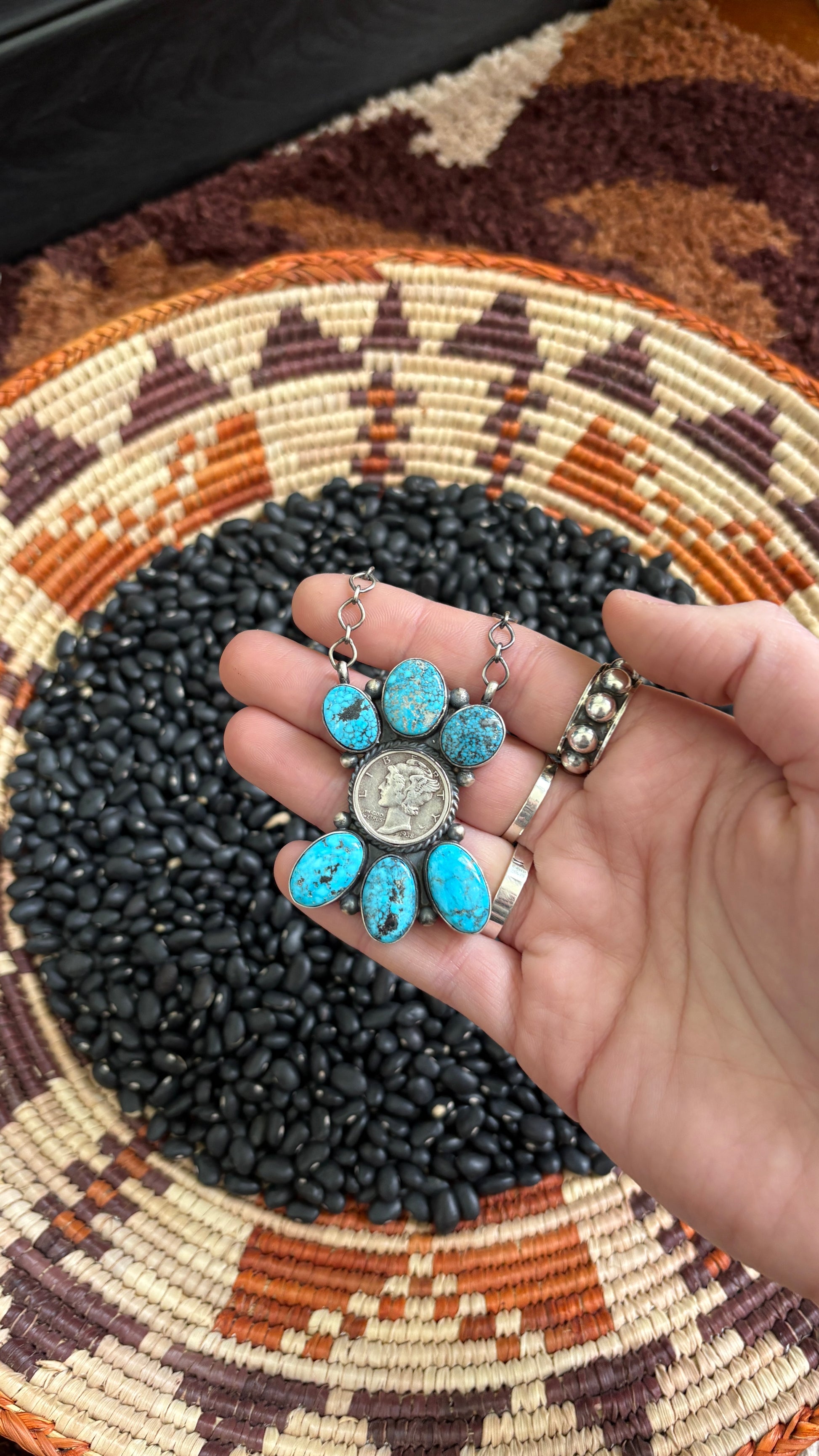 MERCURY DIME KINGMAN TURQUOISE CLUSTER NECKLACE BY DEBRA SMITH