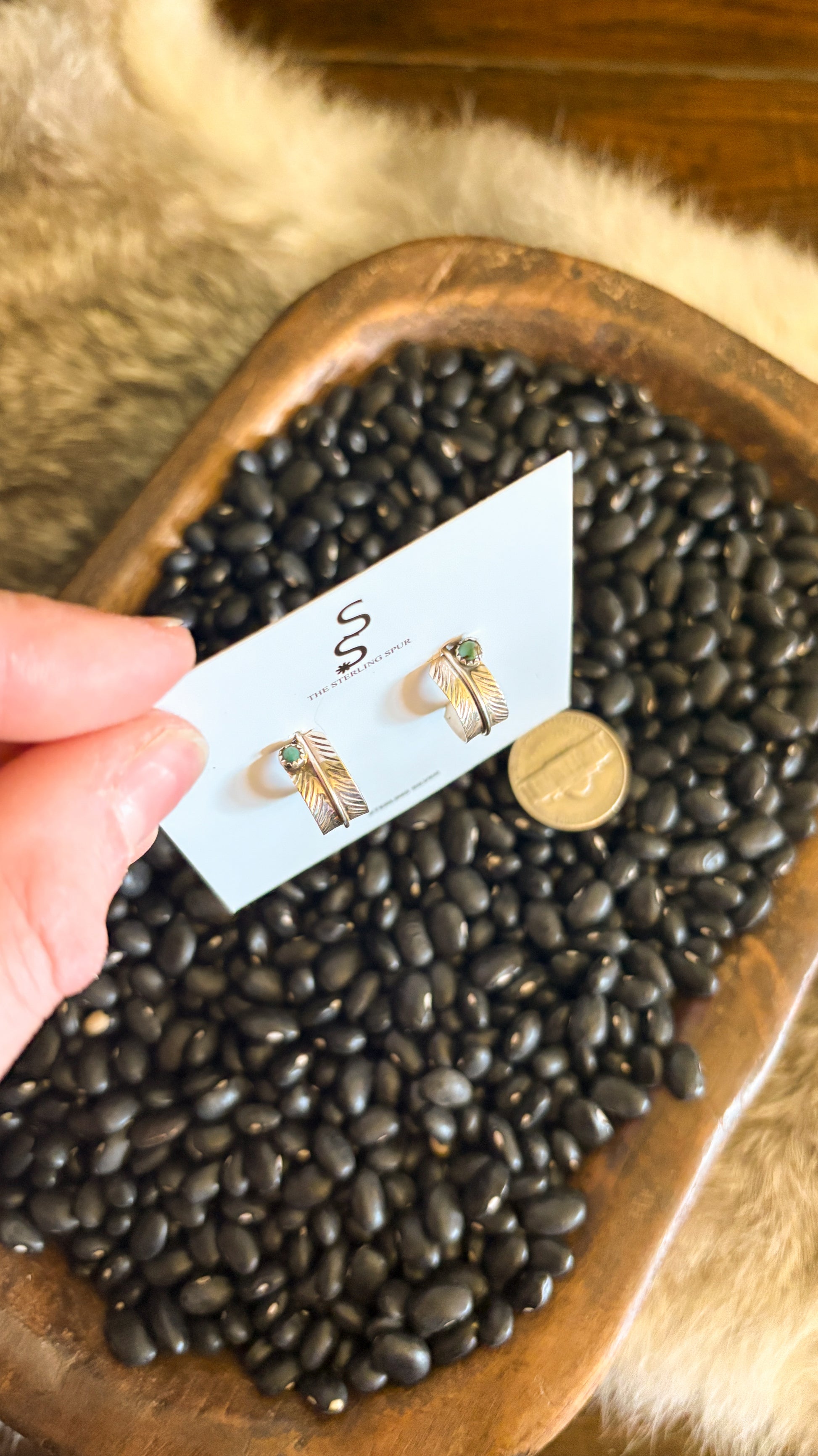 MINI FEATHER HOOPS W/ TURQUOISE STONE