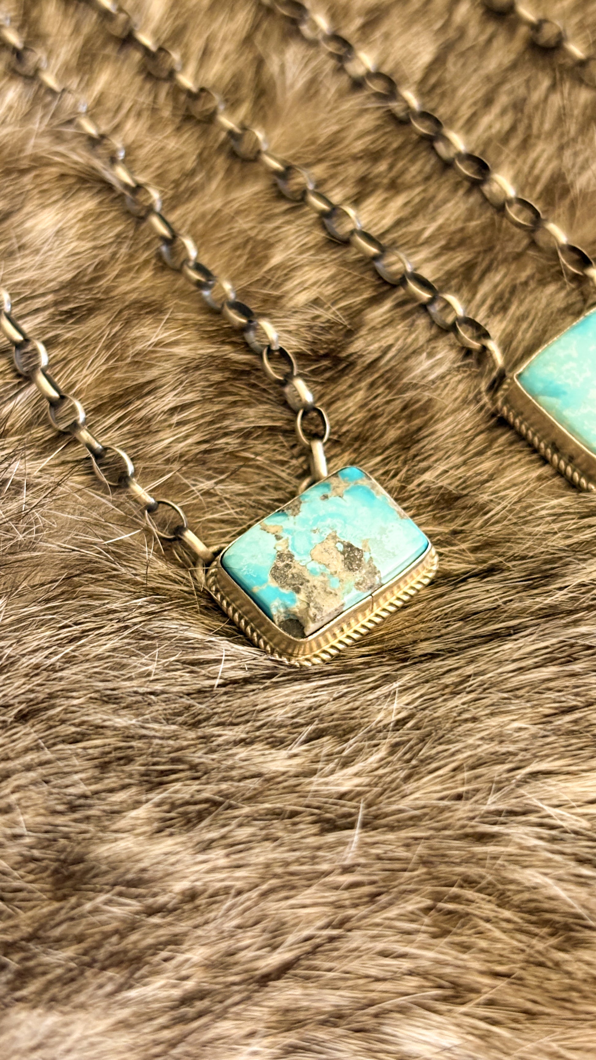 Handcrafted by Native American artists with sterling silver & genuine turquoise stones. Each chain measures about 18” in length. Signed D & D Sterling.