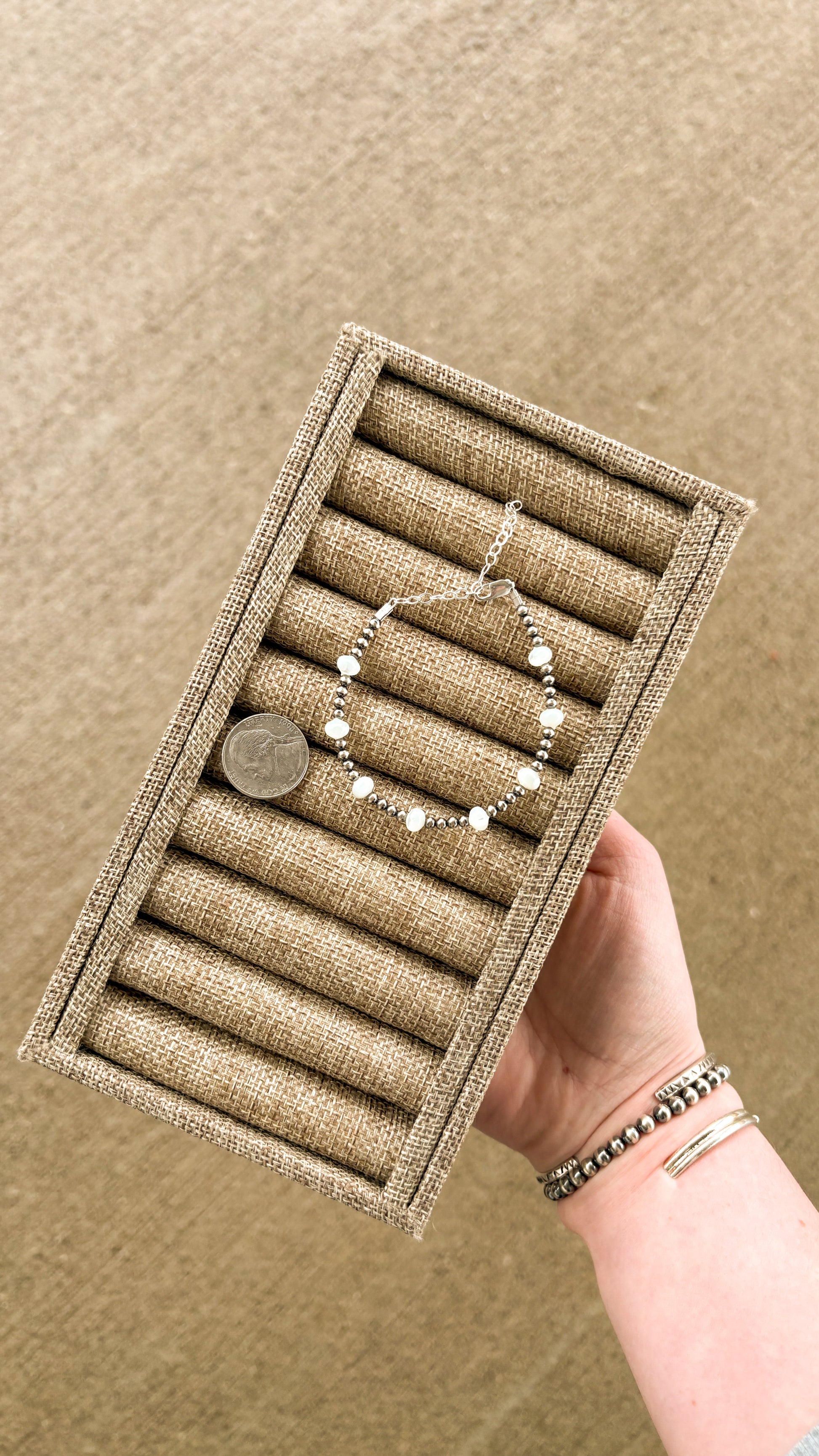 Bracelet measures 6.25” with a 2” Sterling silver extender.