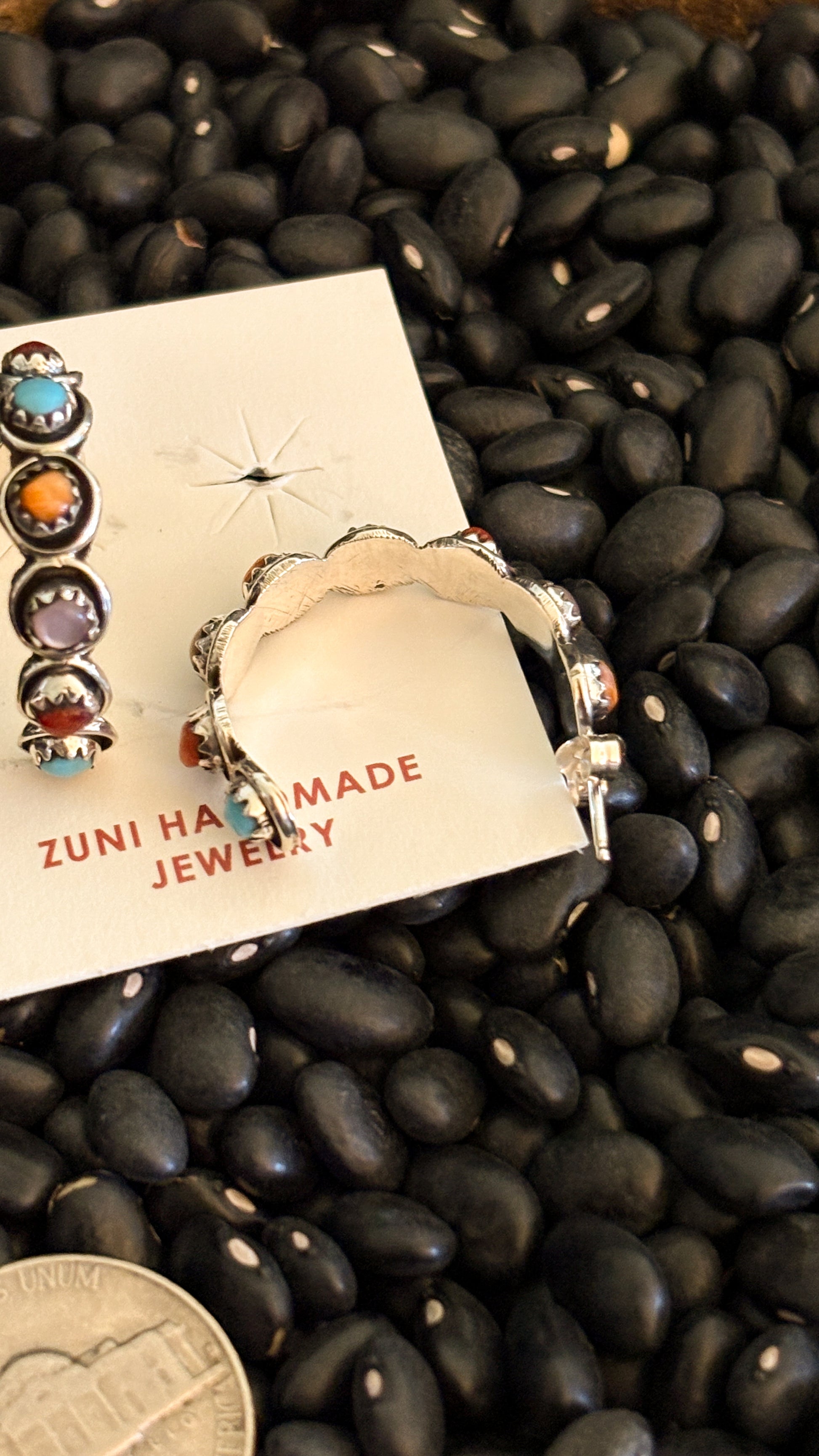 Each pair has orange spiny oyster, turquoise, mother of pearl, & coral stones. Multiple pairs available. Each pair is slightly different.