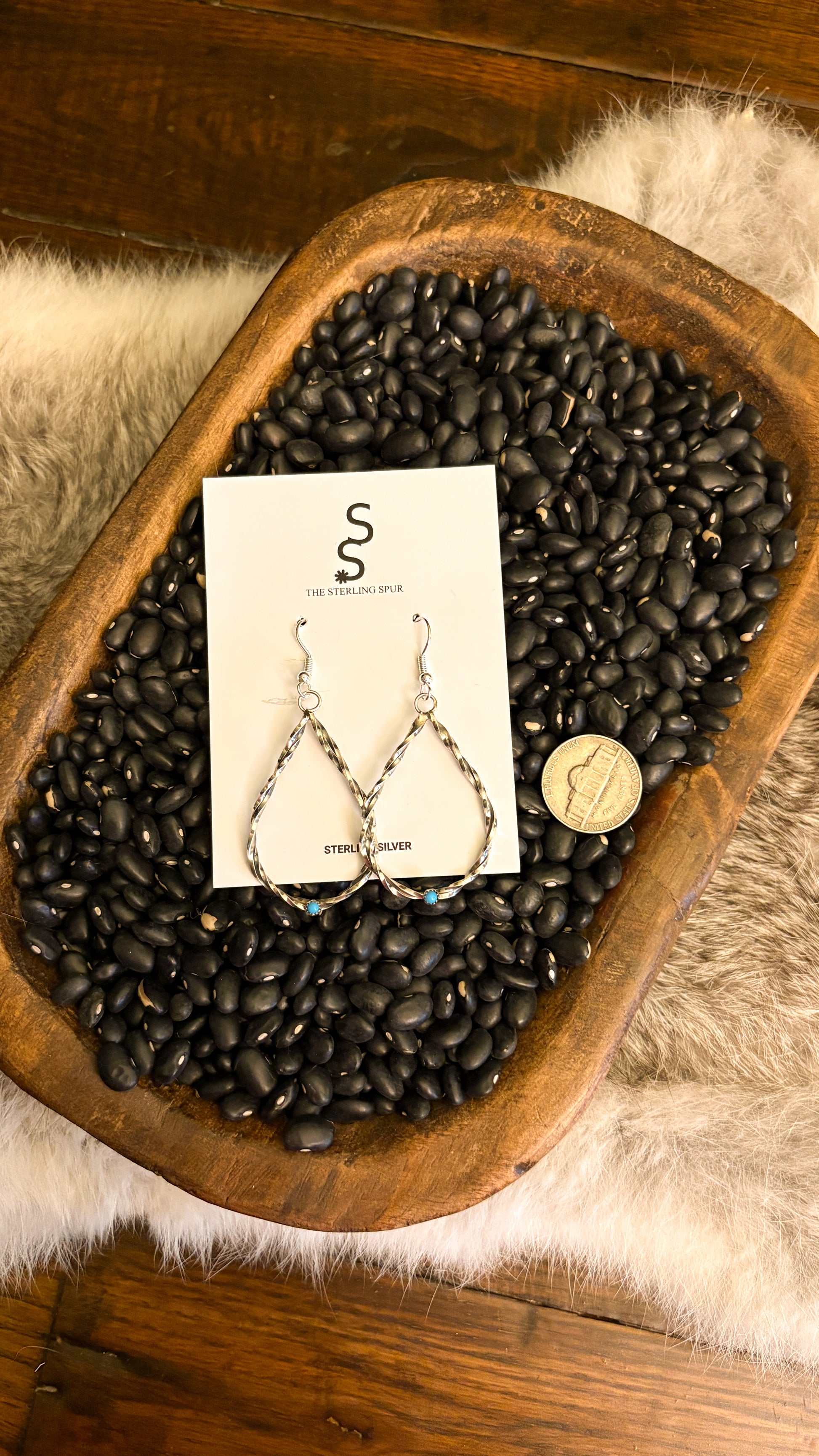 ROPE TWIST DANGLE EARRINGS W TURQUOISE STONE