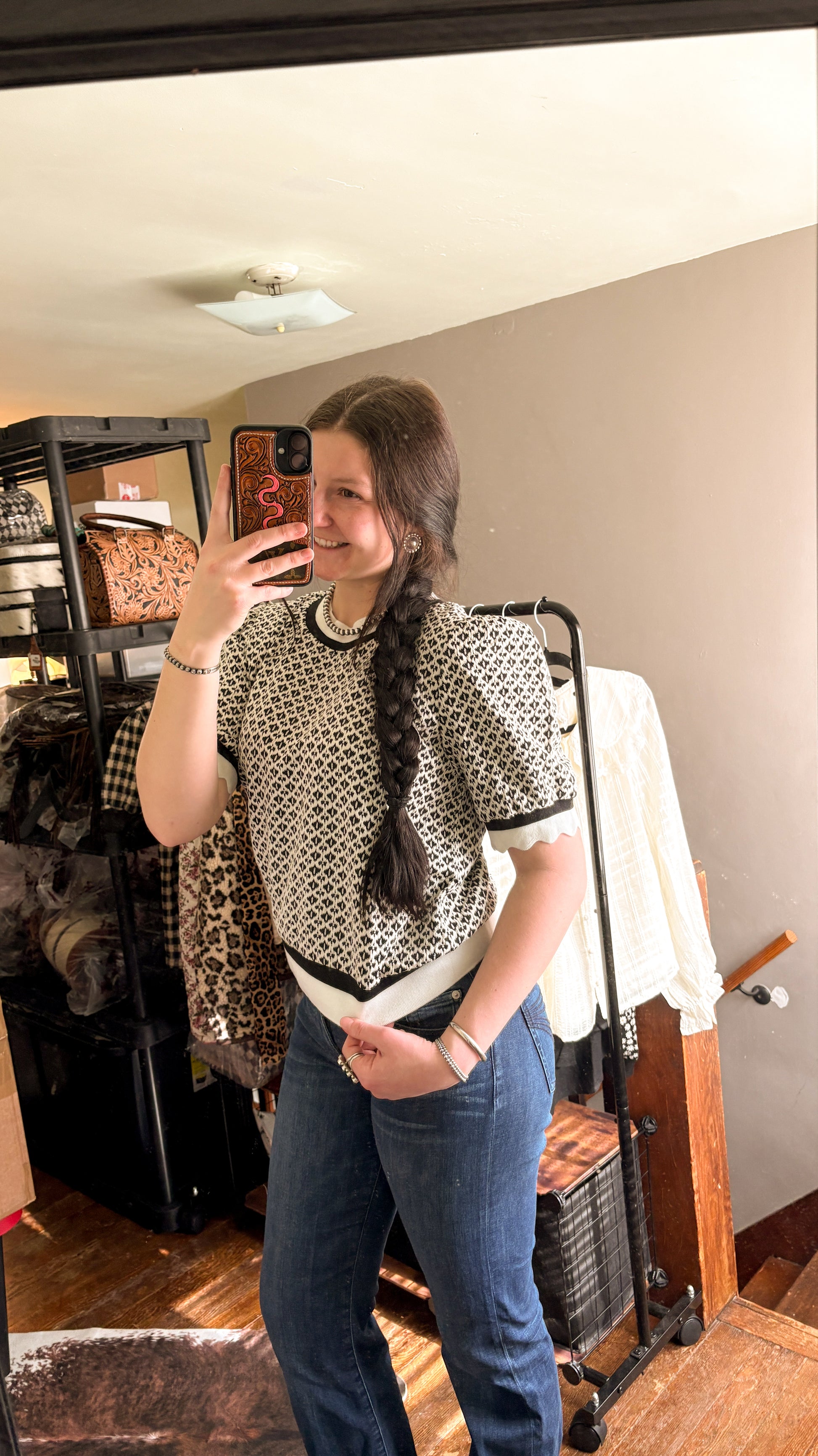 SCALLOPED SLEEVE BLACK & WHITE TOP