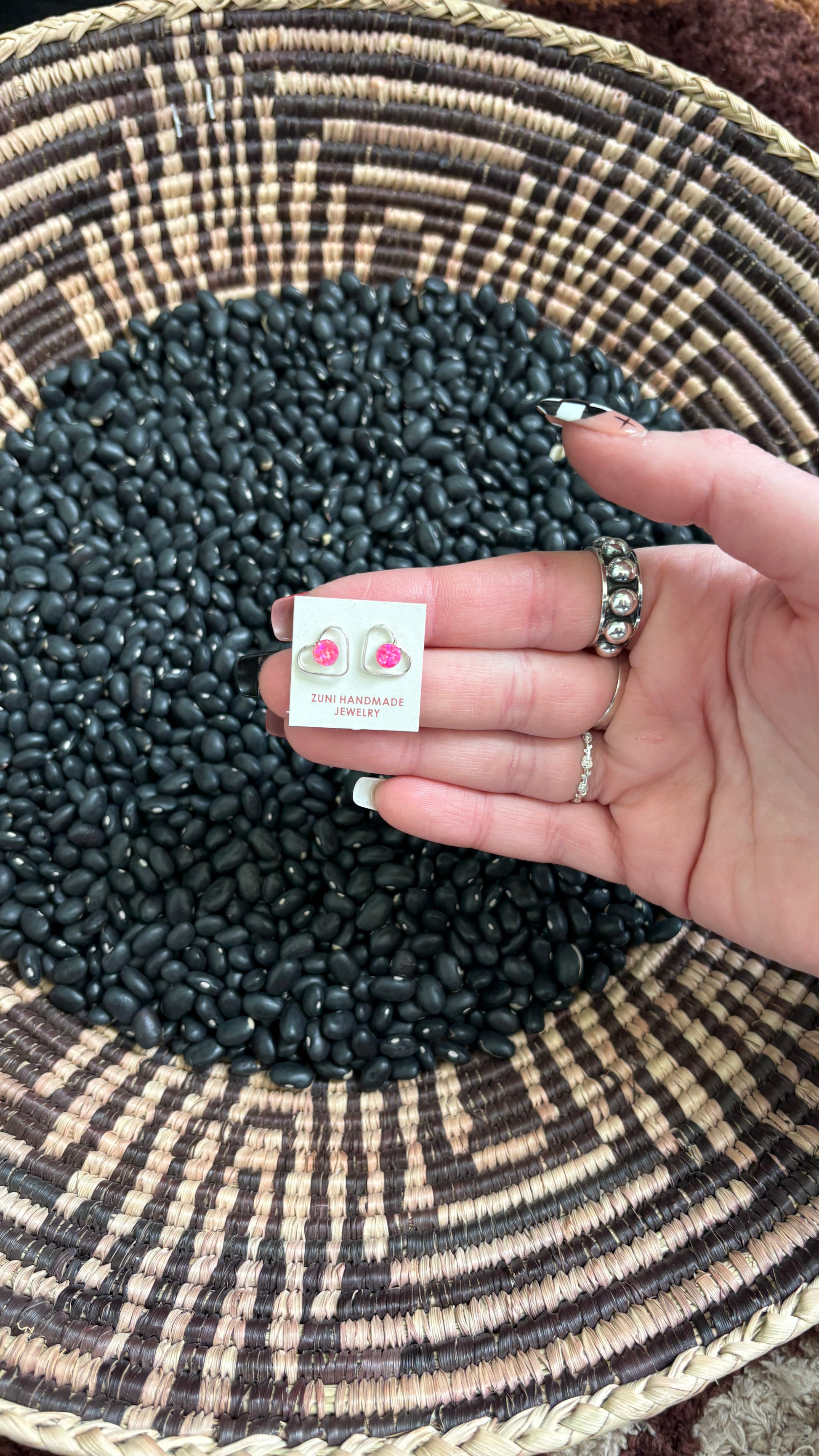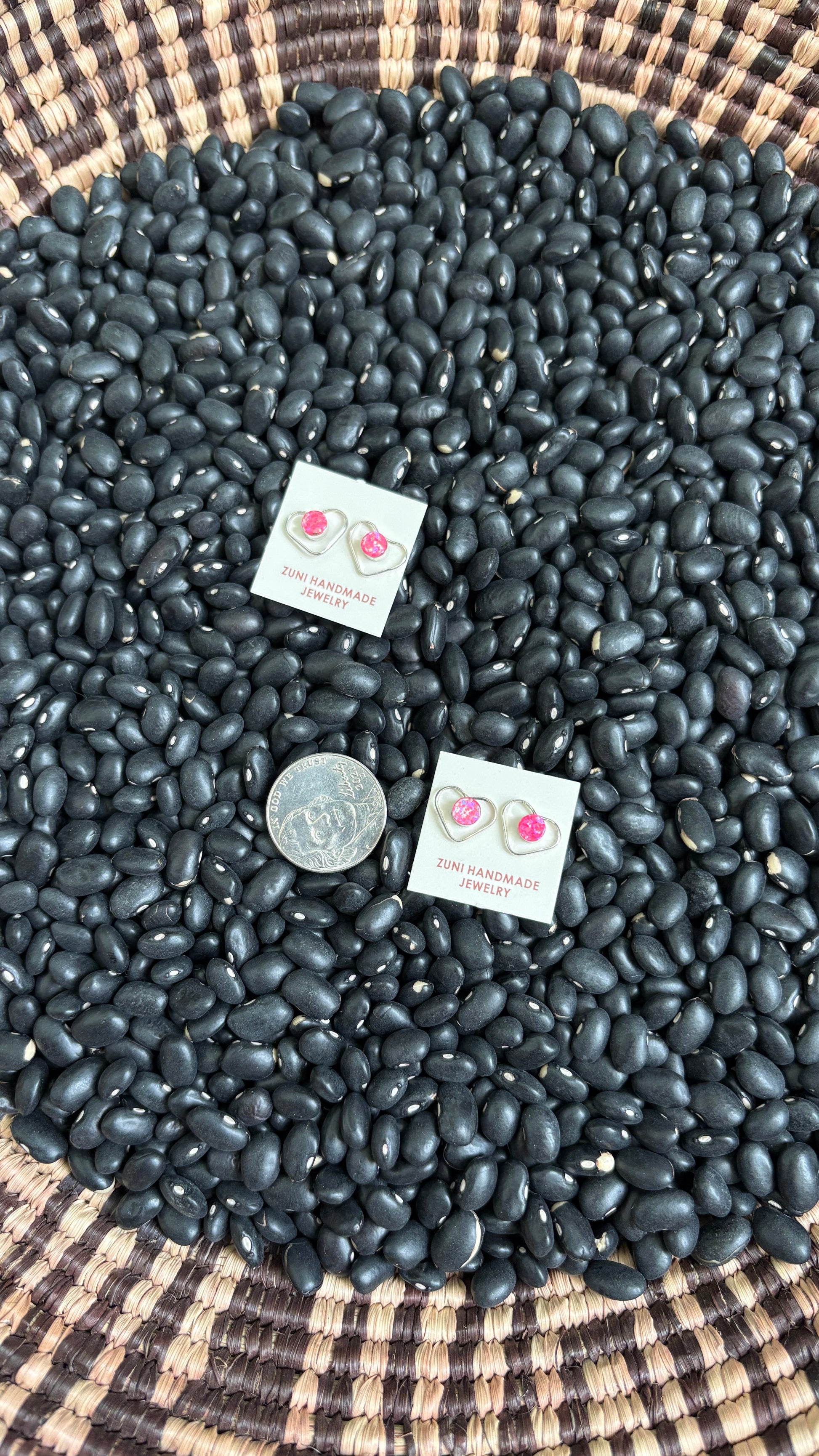 SINGLE STONE HOT PINK OPAL HEART STUDS