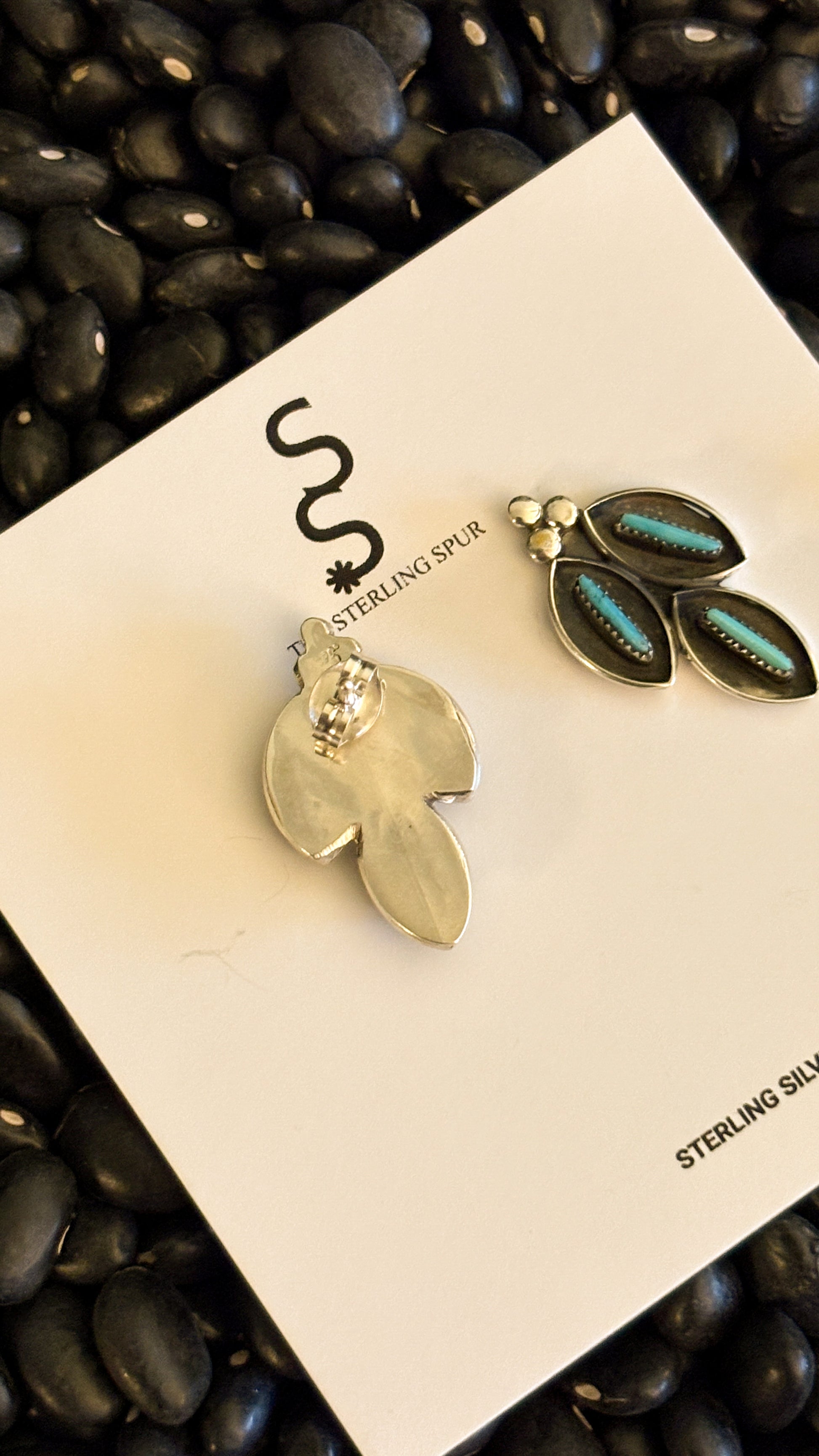 THREE LEAF NEEDLEPOINT TURQUOISE POST EARRINGS