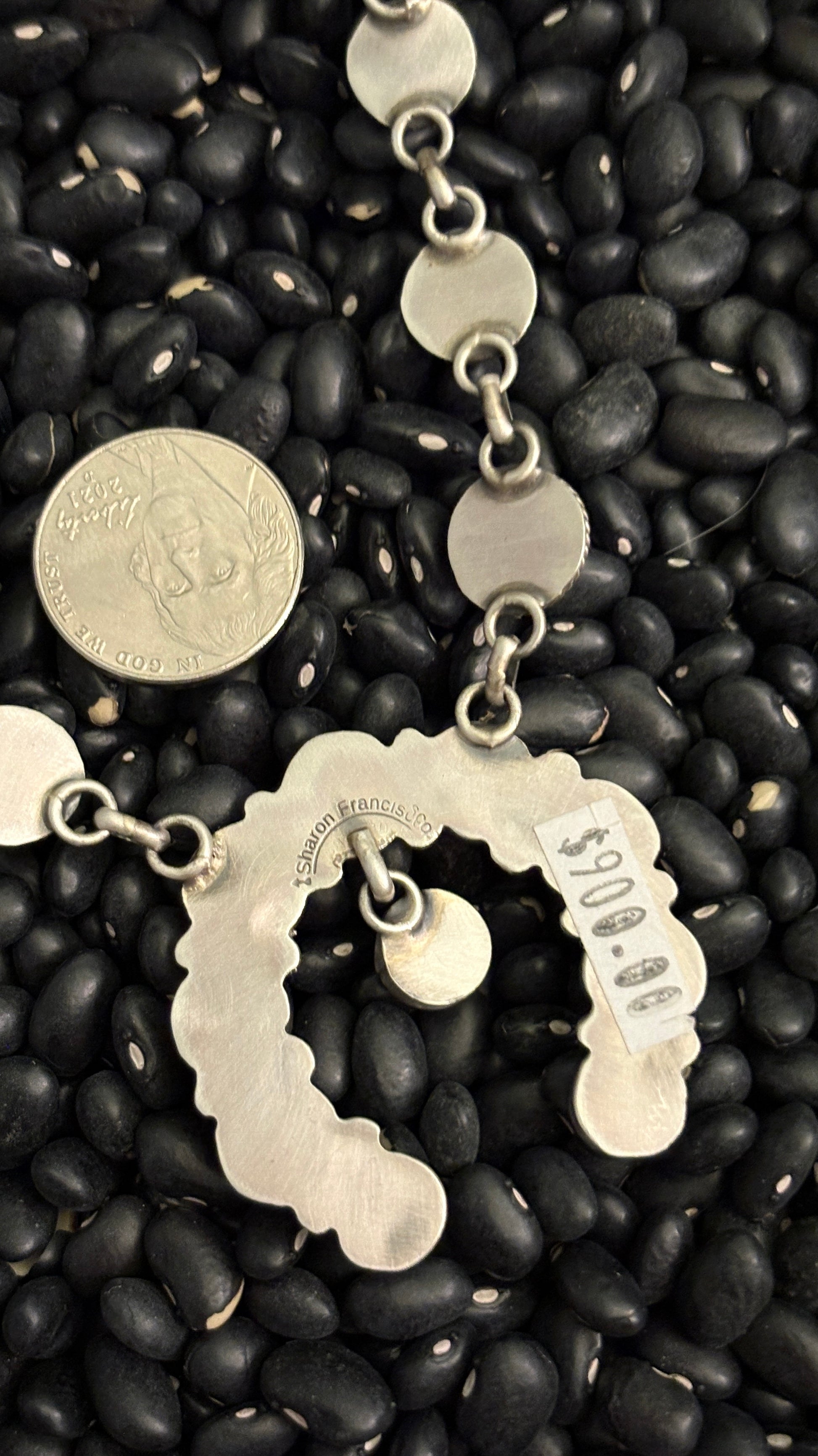 Necklace measures 18". No extender. Stamped "Sharon Francisco sterling".