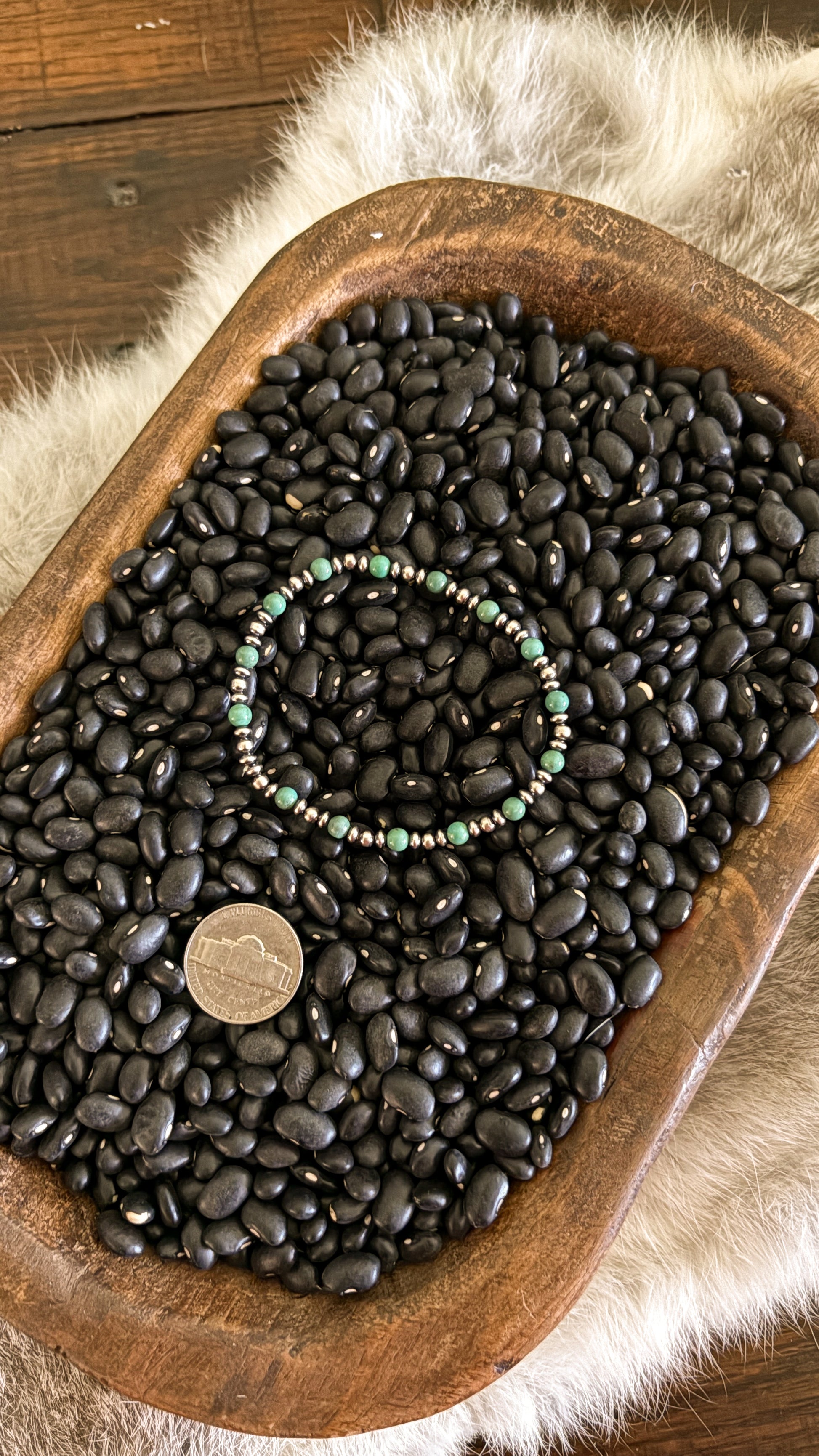 TURQUOISE & PEARL STRETCH BRACELET - GREEN - READY TO SHIP