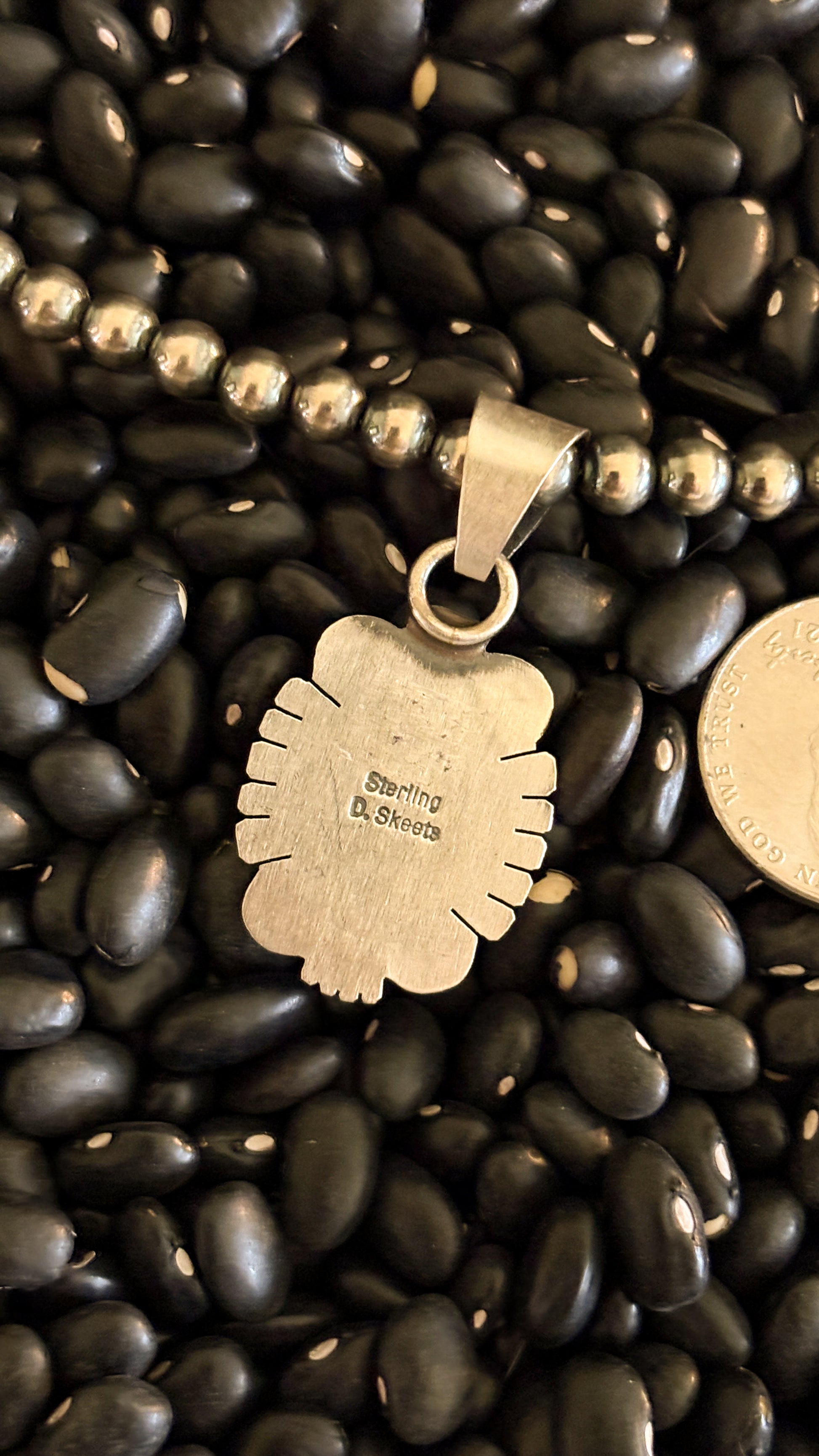 Handcrafted by Native American artist Dave Skeets. Made with sterling silver & a genuine turquoise stone.