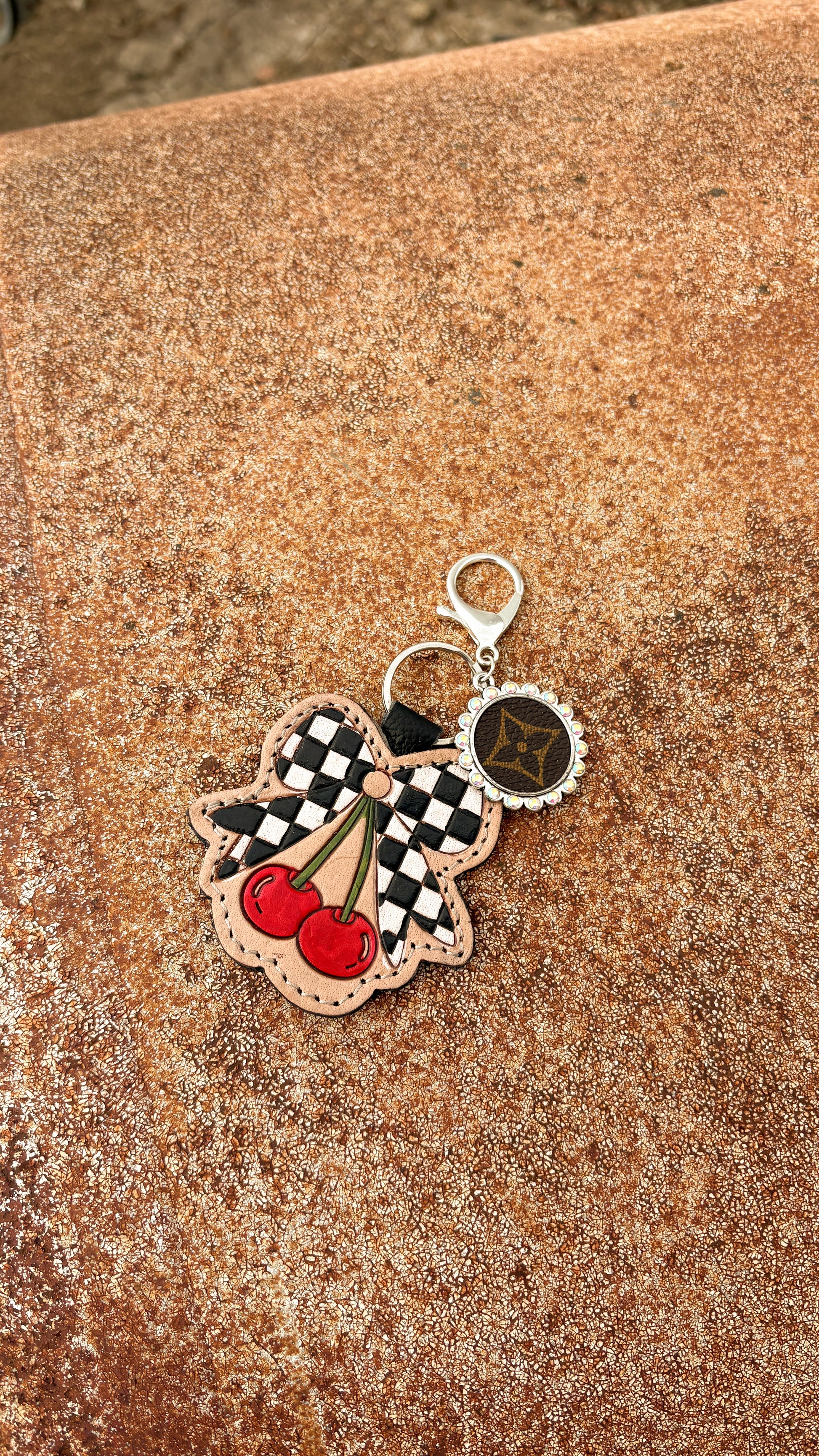 UPCYCLED LV CHERRIES BAG CHARM/KEYCHAIN